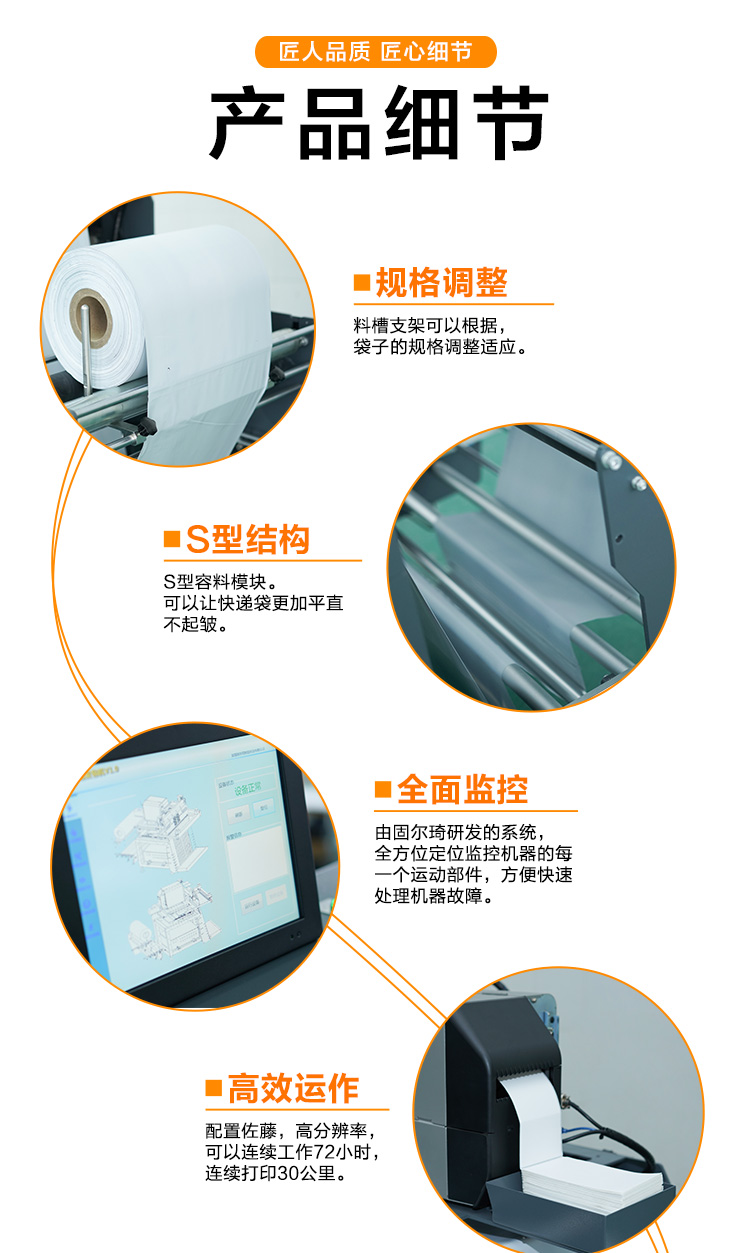 該智能化快遞打包機(jī),該設(shè)備將是自動(dòng)化包裝機(jī)械設(shè)備行業(yè)的里程碑之作,智能快遞打包系統(tǒng)可以提供貨品掃碼、貨品稱重、套裝塑料袋、對塑料袋自動(dòng)封口、自動(dòng)打印面單、自動(dòng)粘貼面單以及貨品自動(dòng)輸送等一體化解決方案。同時(shí),可根據(jù)客戶需要,自動(dòng)對接電商訂單和企業(yè)ERP 或 WMS 系統(tǒng),為客戶提供貨品的塑料袋包裝發(fā)貨整體解決方案。