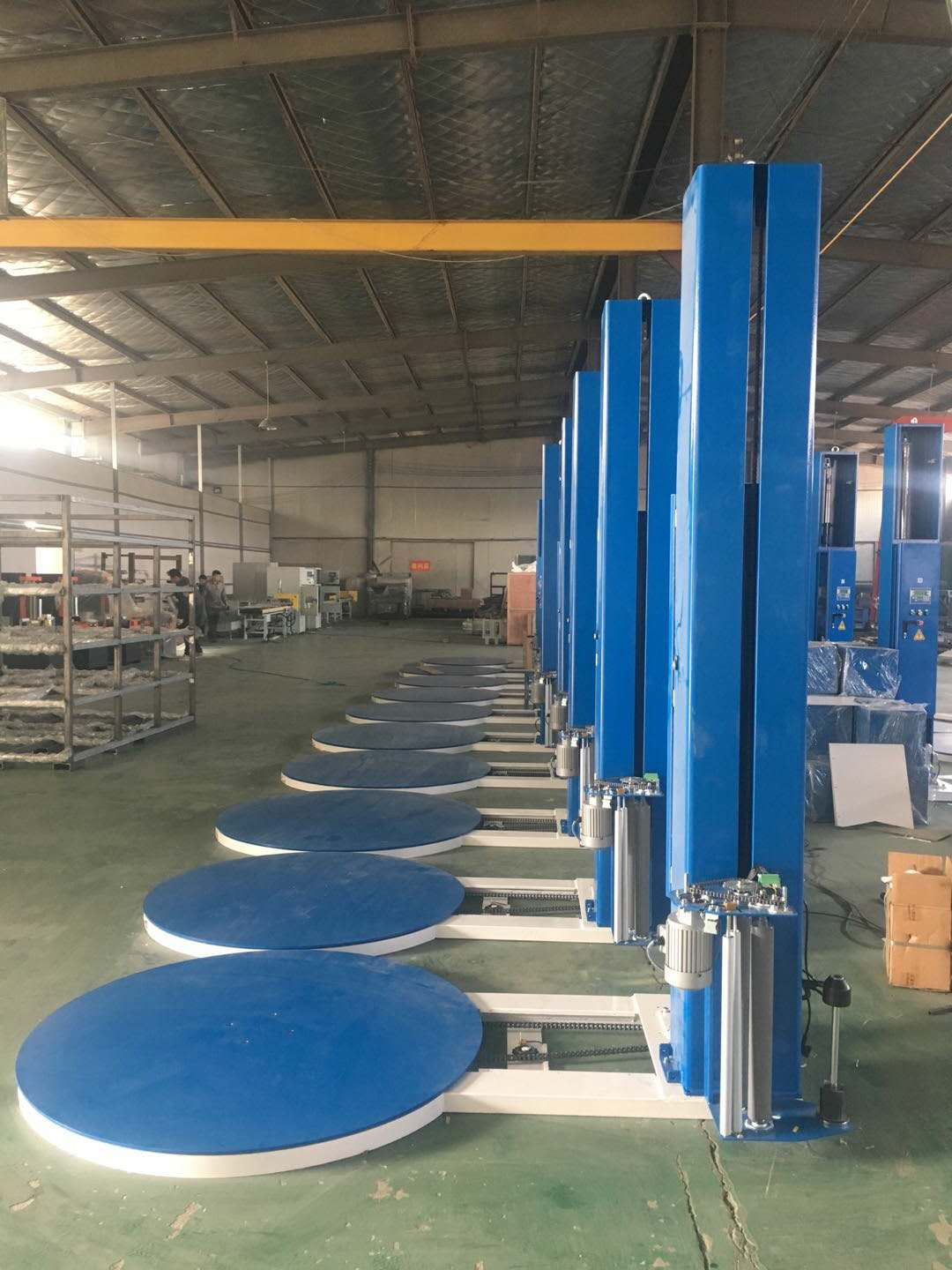 托盤(pán)纏繞機(jī)通過(guò)轉(zhuǎn)臺(tái)旋轉(zhuǎn)帶動(dòng)托盤(pán)貨物轉(zhuǎn)動(dòng),進(jìn)而實(shí)現(xiàn)對(duì)貨物纏繞裹包的設(shè)備。適用于使用托盤(pán)裝運(yùn)的貨物包裝(如用于大宗貨物的集裝箱運(yùn)輸及散件托盤(pán)的包裝等),廣泛應(yīng)用于玻璃制品、五金工具、電子電器、造紙、陶瓷、化工、食品、飲料、建材等行業(yè)。能夠提高物流效率、減少裝運(yùn)過(guò)程中的損耗。具有防塵、防潮、降低包裝成本等優(yōu)點(diǎn)。怎樣選擇適合自己的托盤(pán)纏繞機(jī)呢。