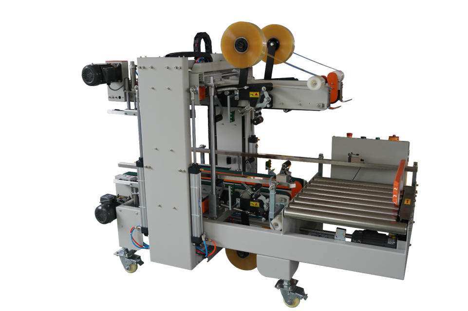 封箱機主要適用于紙箱的封箱包裝,既可單機作業,也可與流水線配套使用,廣泛應用在家用電器、紡織、食品、百貨、醫藥、化工等行業。封箱機采用膠帶對紙箱封口,經濟快速、容易調整,可一次完成上、下自動封箱動作,如采用印字膠帶,更可提高產品形象。